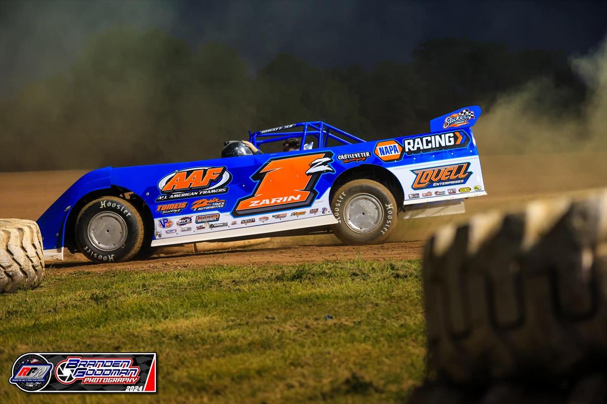 Drawing 21 cars for the event also serving as the rescheduled Ken Schaltenbrand Sr. Memorial, Zarin raced into the ULMS feature on Saturday with a fourth-place finish in his heat.